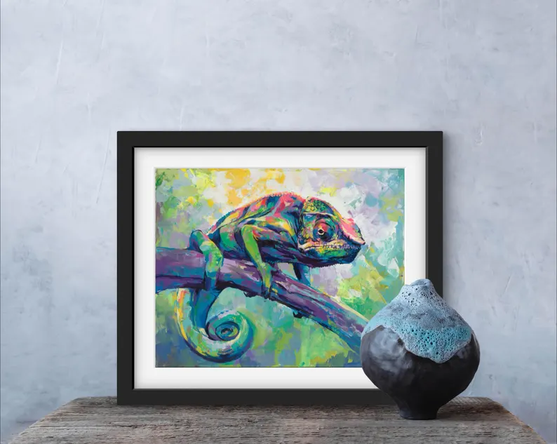 CHAMELEON Print, Chameleon Canvas Art, Chameleon Home Decor, Chameleon Wall Art, Chameleon Poster, Small Chameleon Print, Chameleon Artwork