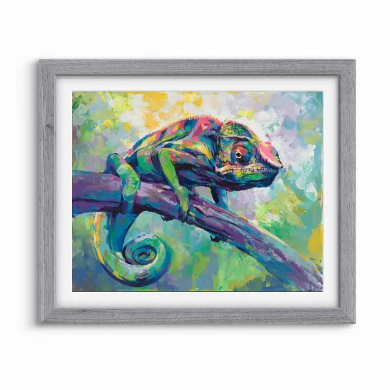 This is a print of my original 22x28” acrylic on canvas Chameleon