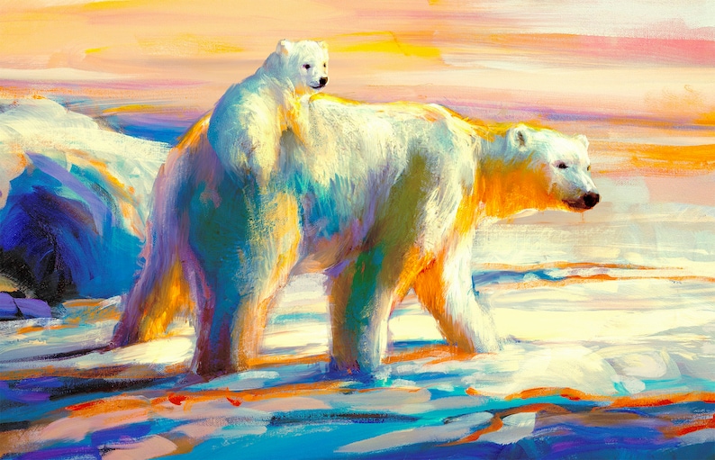 FIRST LIGHT Print, Wildlife Art, Polar Bear Art, Bear Print, Polar Bear Artwork, Polar Bear Wall Art, Polar Bear Canvas, Calgary Zoo, Zoo Lights