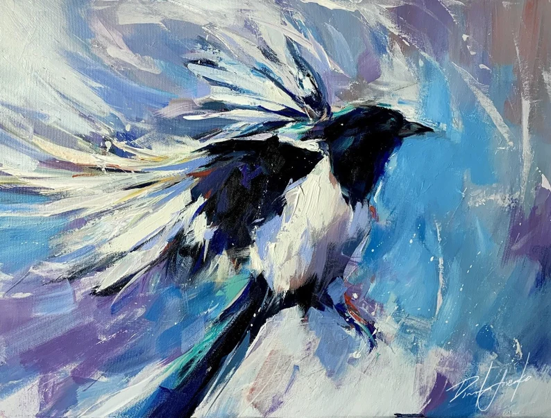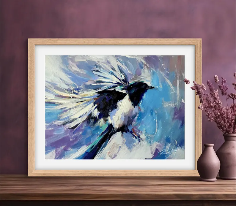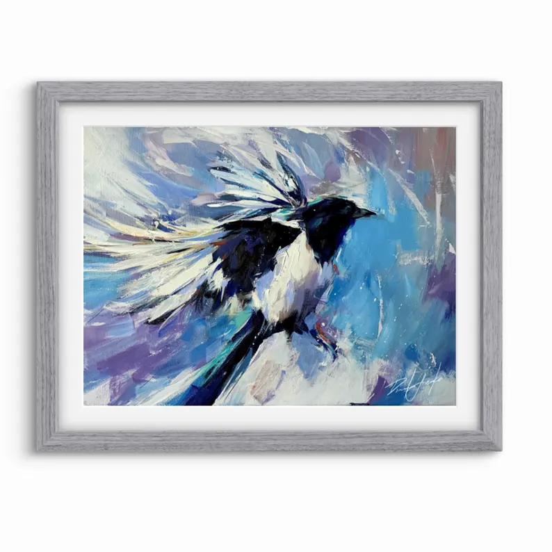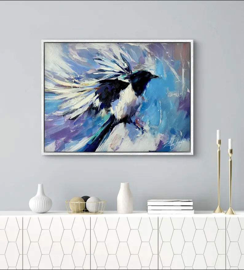 FROZEN GASPS Print, Magpie Canvas, Magpie Home Decor, Magpie Wall Art, Magpie Poster, Magpie Print, Magpie Portrait Art, Bird Art