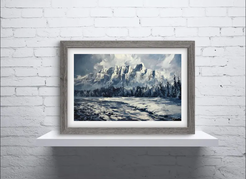 FROZEN SAILS Print, Banff Poster, Mountain Artwork, Landscape Poster, Alberta Decor,Mountain print, Castle Mountain Wall Art