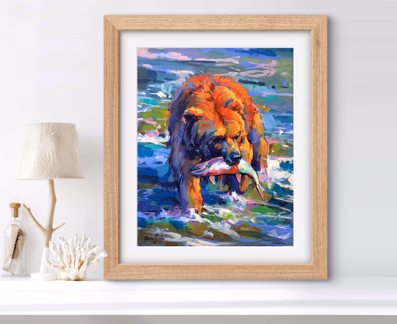 GREAT CATCH Print, Bear Print, Bear Wall Art, Bear Artwork, Bear Home Decor, Bear Poster, Bear Artwork, Bear Small Art