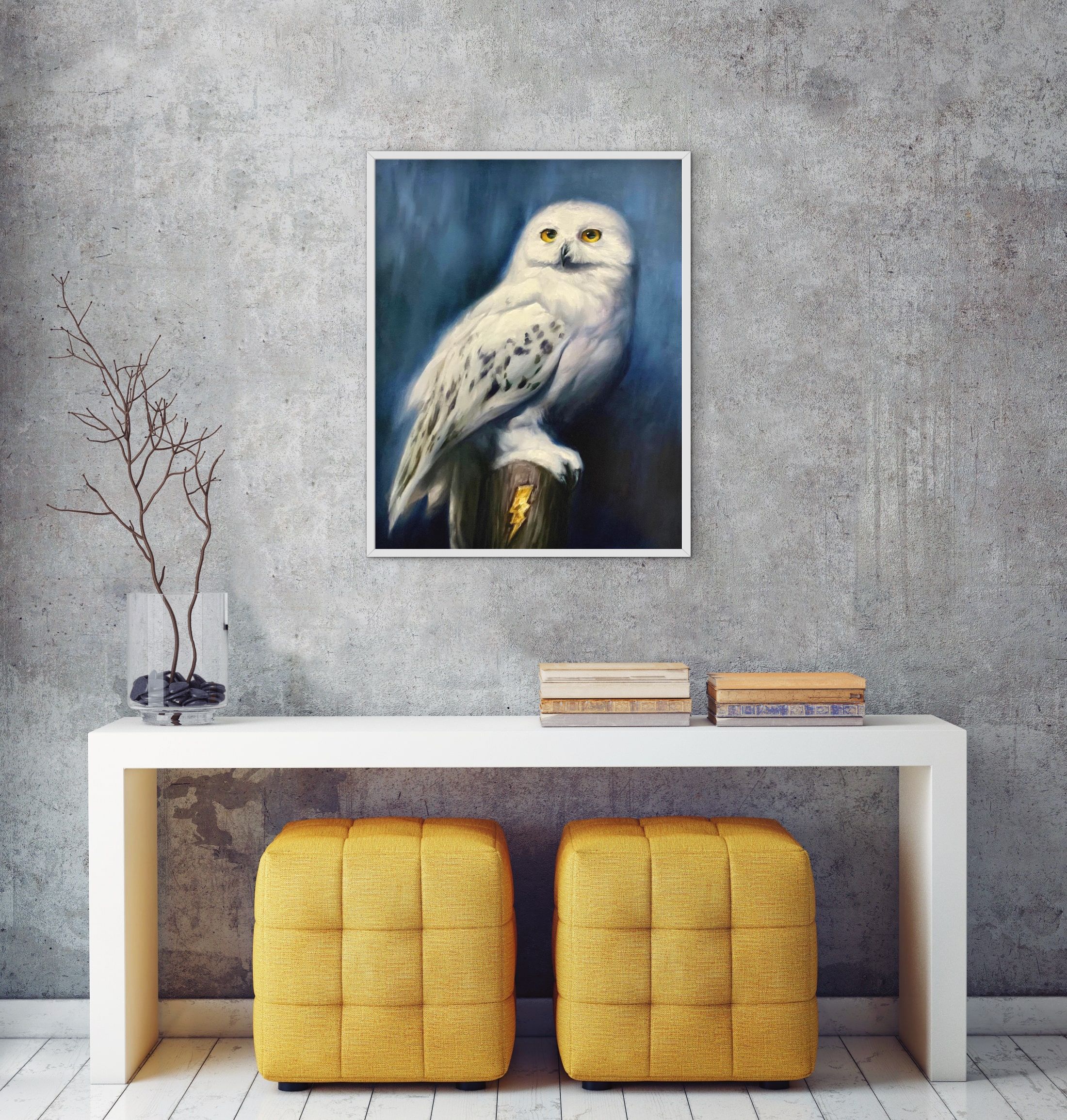 This is a print of my original 24x30" oil on canvas Hedwig.
