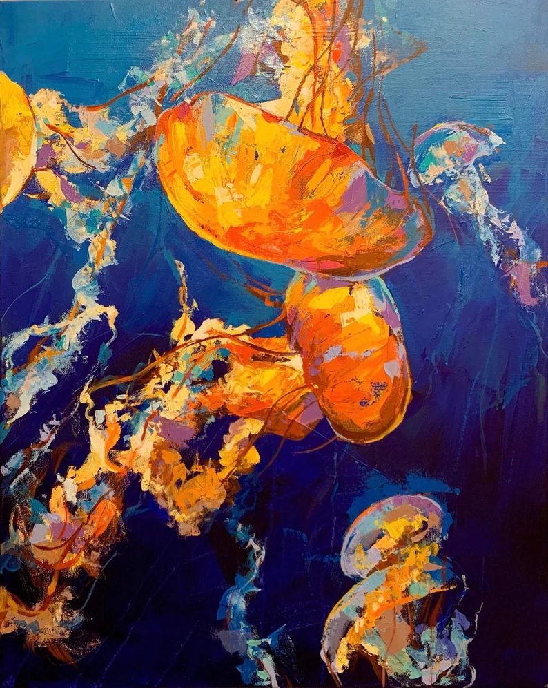 This is a print of my original 24x30" acrylic on canvas Jellyfish.