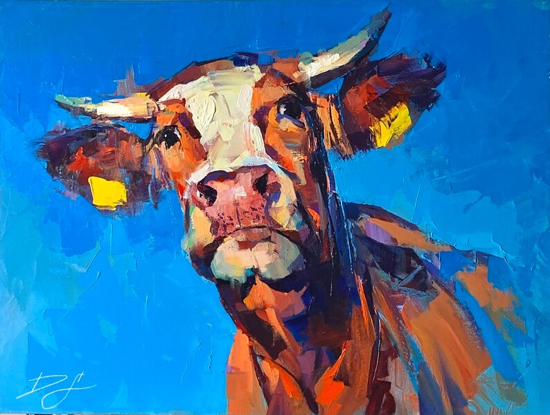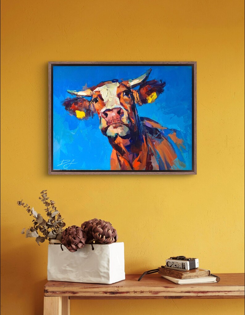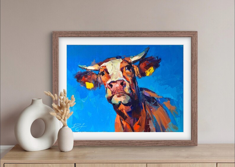 NOSY NEIGHBOR Print, Cow Canvas, Cow Home Decor, Cow Wall Art, Cow Poster, Cow Print, Cow Portrait Art