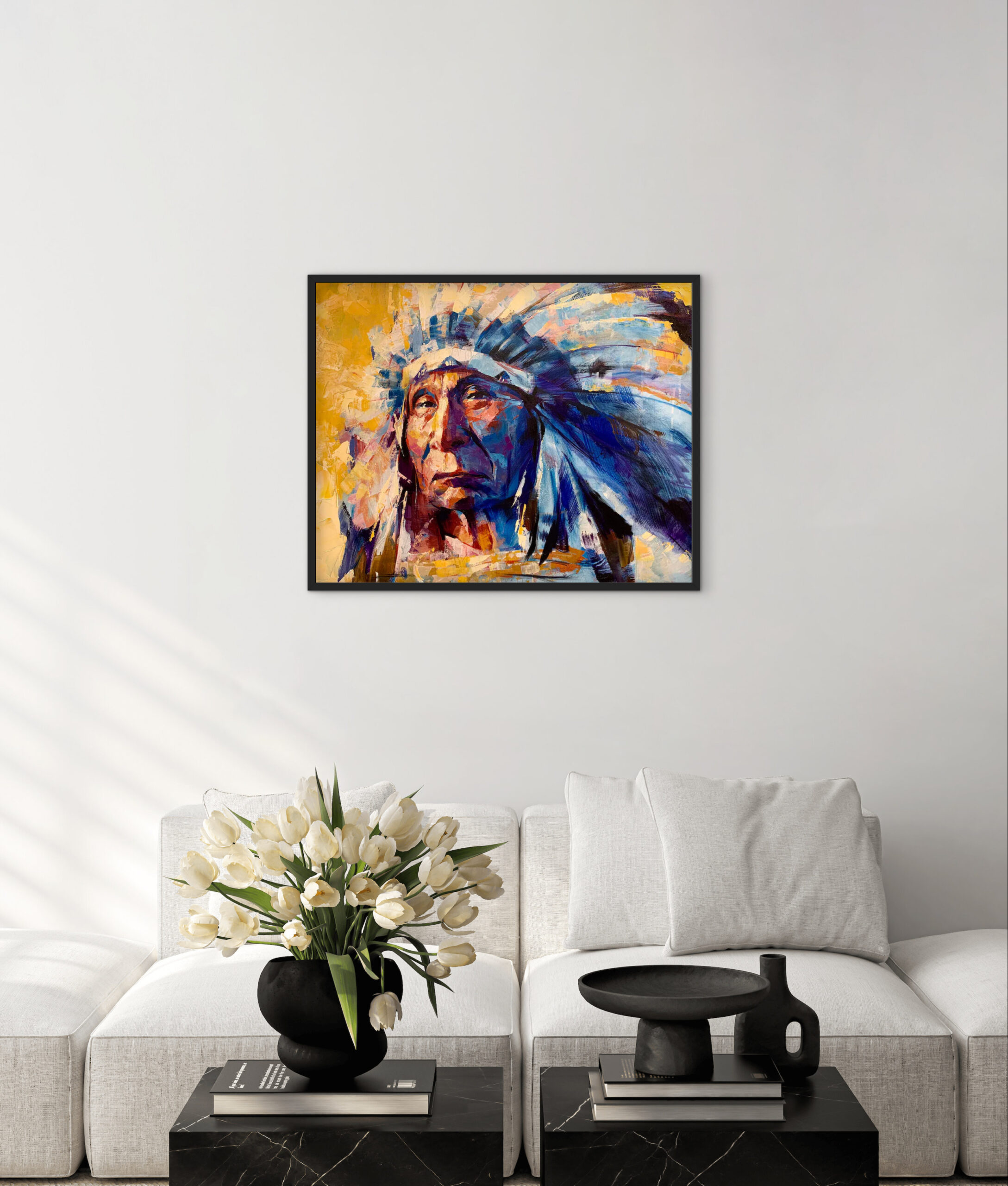 RED CLOUD Print, Portrait Canvas, Native Art Canvas, Chief Home Decor, Native Wall Art, Native Chief Artwork, Native Art Print, Portrait Art