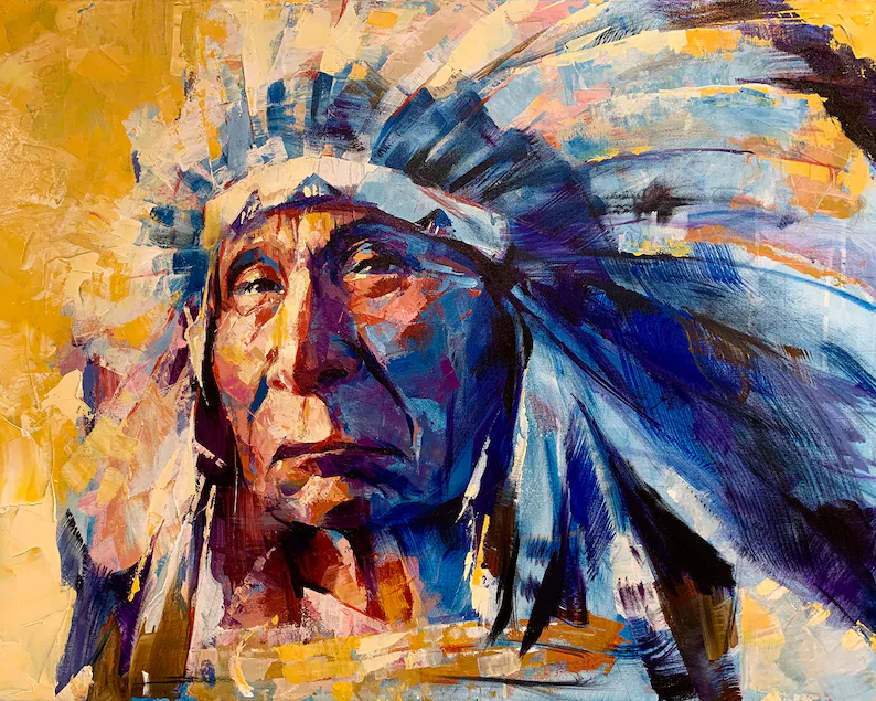 This is a print of my original 40x30" acrylic on canvas Red Cloud portrait.