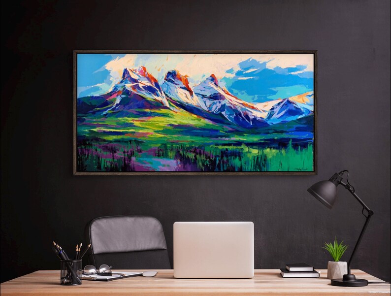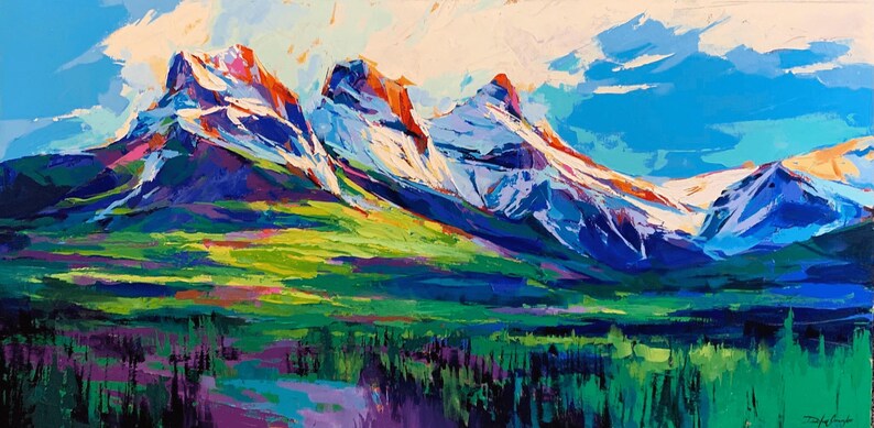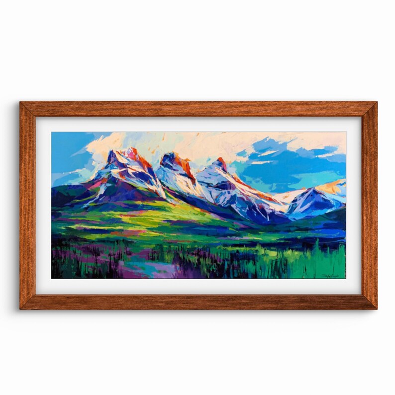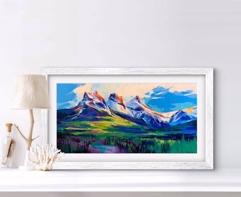 SISTERS IN THE SUN Print, Mountain Canvas, Landscape Art, Three Sisters Print, Mountains Artwork, Alberta Art