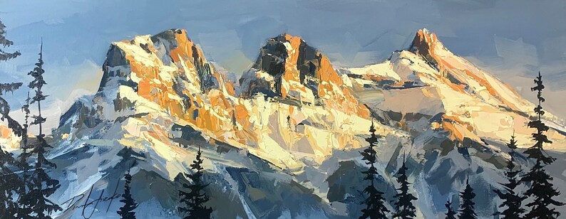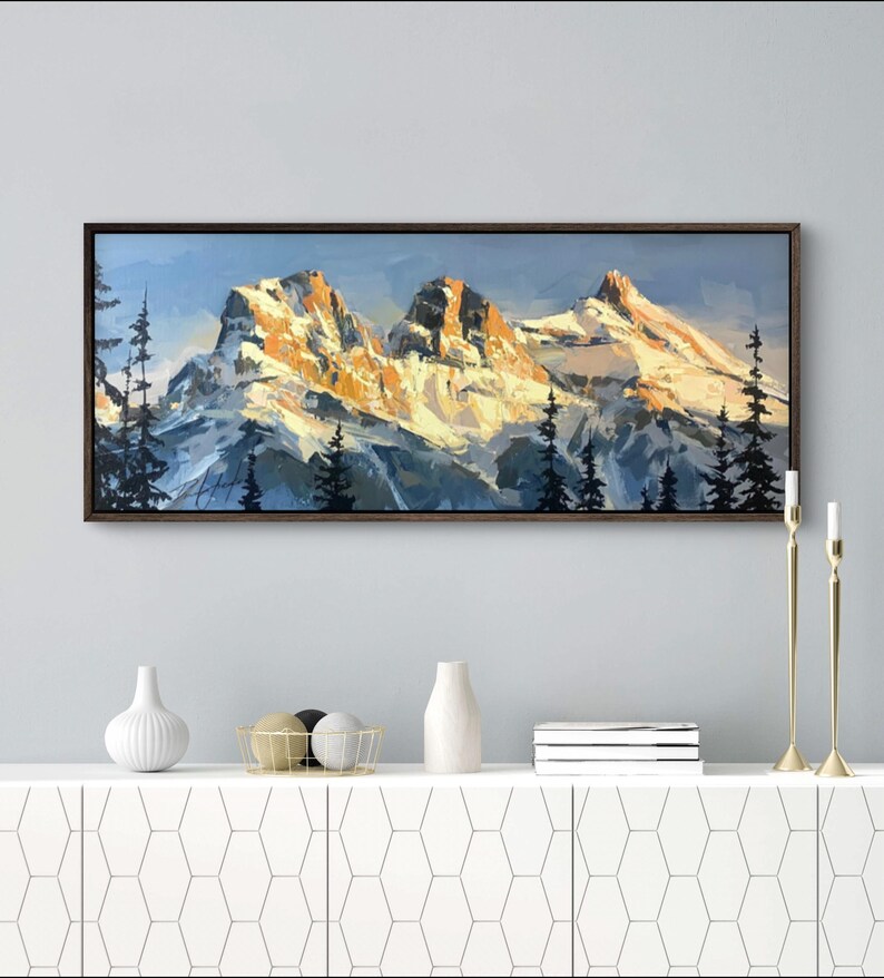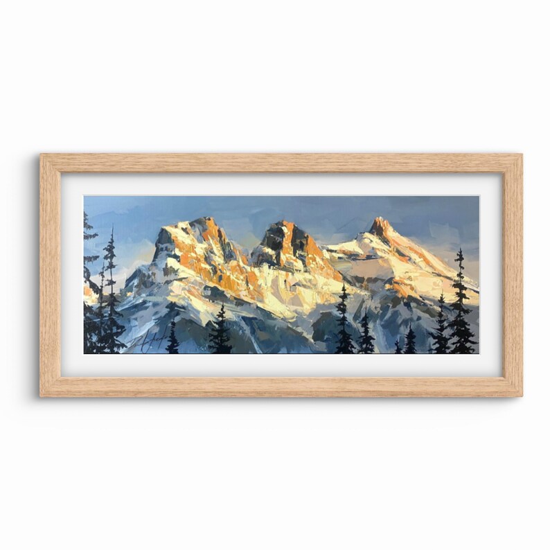 SISTERS OF THE DAWN Print, Mountain Canvas, Landscape Artwork, Three Sisters Print, Mountains Canvas Art, Alberta Art