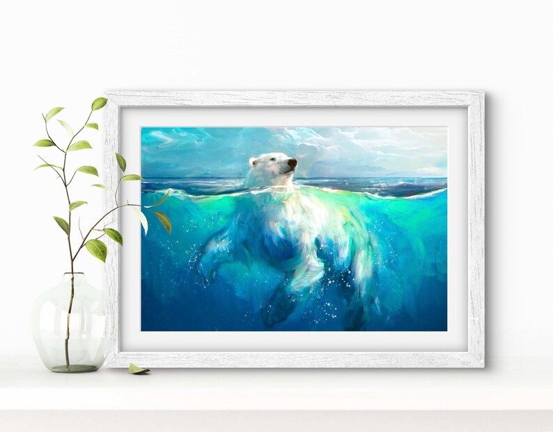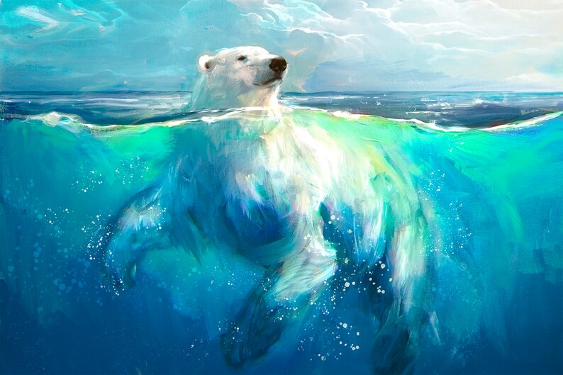 SWIMMING Print, Wildlife Art, Polar Bear Art, Bear Print, Polar Bear Artwork, Polar Bear Wall Art, Polar Bear Canvas, Calgary Zoo, Zoo Lights