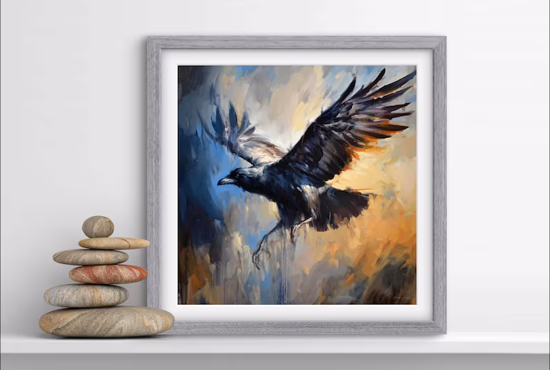 YOUNG SEER Print, Raven Print, Raven Wall Art, Raven Artwork, Raven Home Decor, Bird Poster, Crow Artwork, Crow Oil Painting, Crow Home Decor